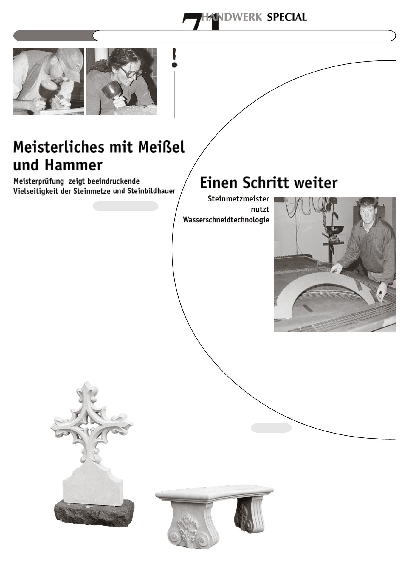 Während der Meisterprüfung dabei / junger Steinmetzmeister setzt aufWasser