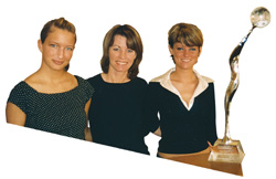 | Friseurmeisterin Patricia Normann (Mitte) mit ihren Lehrlingen Julia Laubenthal (links) und Manuela Kern am „Friseur- Oscar“. |